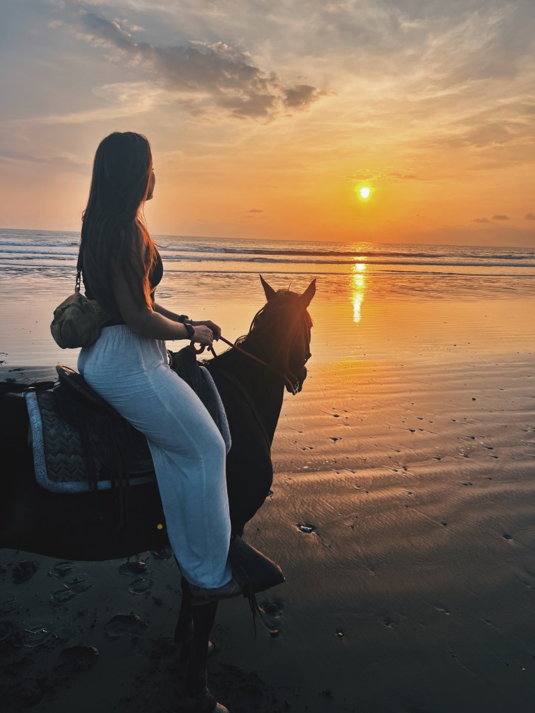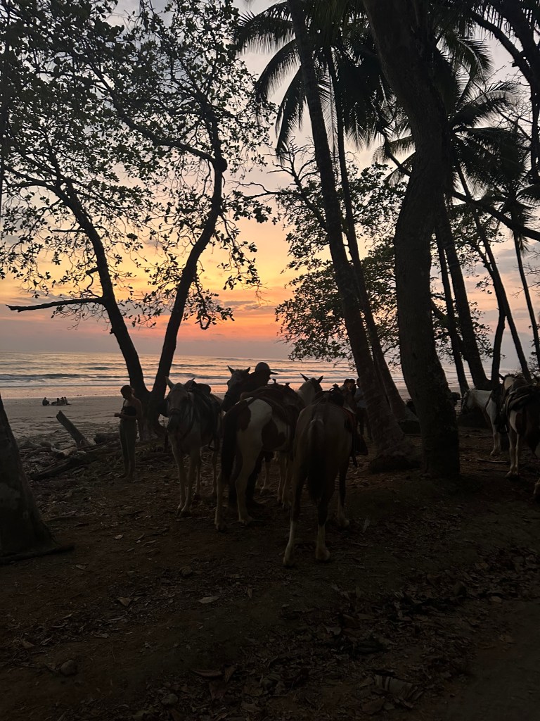 While in Santa Teresa, we spent our days walking around the small dirt road town, where you can find local shops, restaurants, and that familiar, rustic Costa Rican charm. One of the highlights of this stop was the horseback riding tour we took with Horizonte Horse Experience. The tour was absolutely magical—we rode along the beach at sunset, galloping through the surf with the sun sinking into the horizon. Along the way, we stopped to crack open fresh coconuts (so refreshing!) and take in the views. Our guide Michelle was an absolute ledgend, and the experience was one of those once-in-a-lifetime moments that I’ll always cherish.