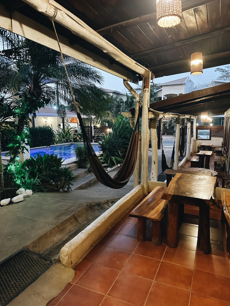 After a couple days, we drove up to Nosara, another lesser-known gem on the Pacific coast. Nosara is a peaceful, tranquil spot, famous for its surf and yoga culture. We stayed at Socialtel Nosara, a well-known budget-friendly hostel chain that’s always a great choice for meeting other travelers and getting great value for your stay. It had a fantastic vibe, with hammocks, a pool, and everything you need to unwind after a day in the surf. One of the nights we stayed they even hosted salsa lessons!